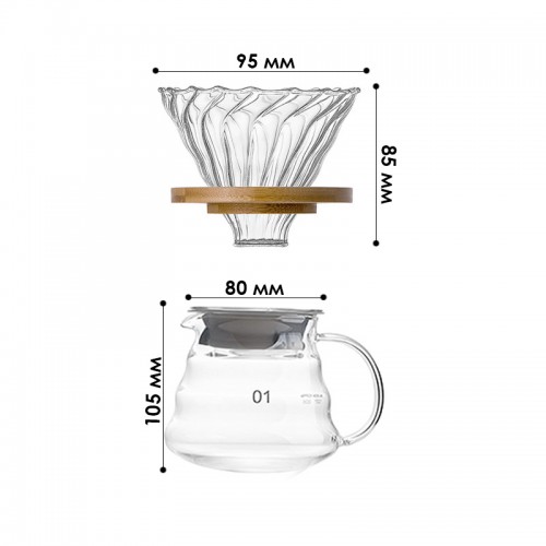 Набор для приготовления кофе Choxila 11737 пуровер сервер стеклянный 300 мл