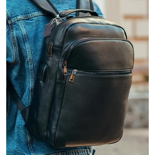 Рюкзак шкіряний для чоловіка 29х40х15, чорний колір