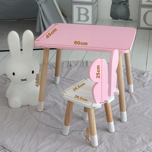 Практичний прямокутний столик із натурального дерева та МДФ, створений спеціально для дітей. Безпечний, зносостійкий та зручний у використанні.