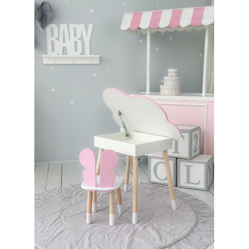 Дитячий стіл хмаринка з нішею 54х68х50, столик трюмо з відкидним верхом, рожевий