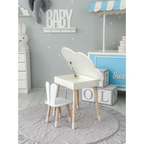 Дитячий стіл хмаринка з нішею 54х68х50, столик трюмо з відкидним верхом, білий