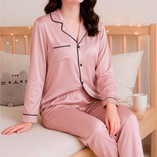 Комплект женской пижамы 806 Розовый рубашка с длинным рукавом и штанами одежда для дома XL