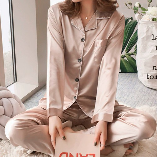 Комплект женской пижамы 806 Светло-бежевый рубашка с длинным рукавом и штанами одежда для дома M