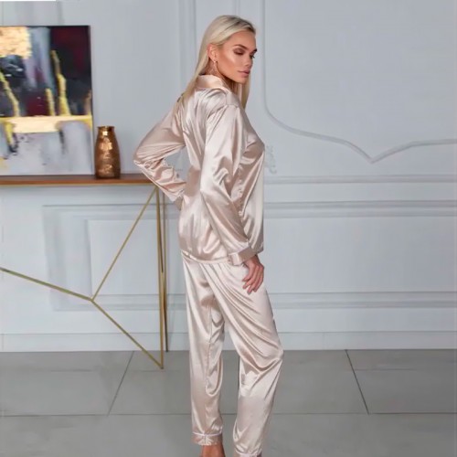 Комплект женской пижамы 806 Светло-бежевый рубашка с длинным рукавом и штанами одежда для дома XL