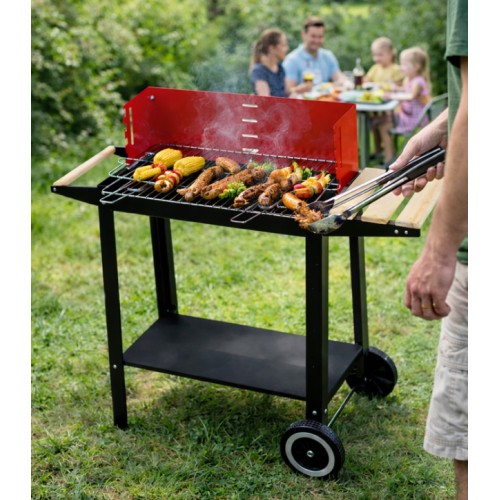Завдяки транспортним колесам гриль легко переміщувати, а нижня полиця забезпечує додаткове місце для вугілля або необхідних речей.