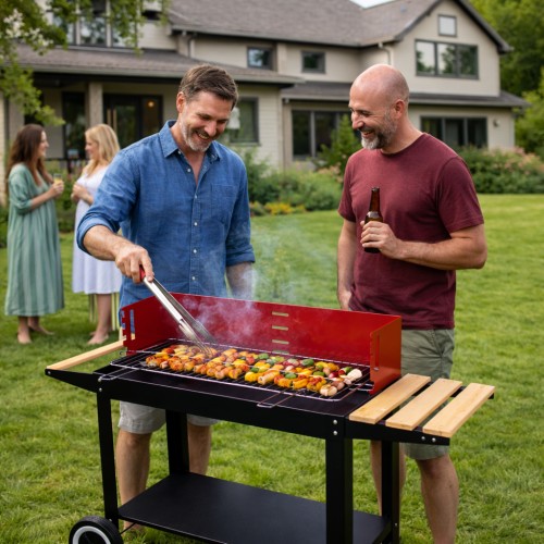 Практичний і функціональний вугільний гриль — ідеальне рішення для літніх зустрічей у саду, на дачі або терасі. Завдяки стабільній конструкції та великій поверхні для приготування, він чудово підходить для сімейних обідів і відпочинку з друзями. Класичний дизайн у поєднанні з сучасними деталями забезпечує зручність у використанні та привабливий вигляд.