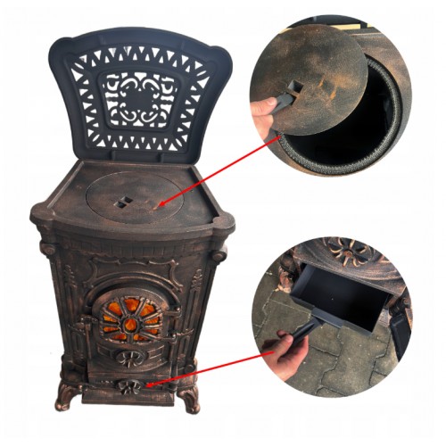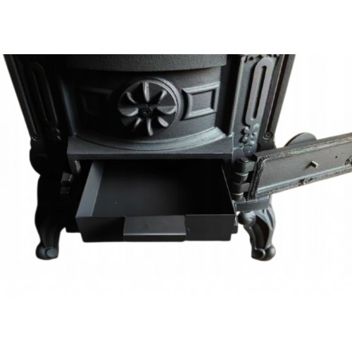 За допомогою цієї печі-каміна ви легко створите опалювальну систему, яка зігріє ваш будинок взимку. Продукт відрізняється простотою та дешевизною експлуатації, адже для його топки використовується звичайне дров’яне паливо. Піч також легко підтримувати в чистоті завдяки інтегрованому попільнику, який полегшує його очищення. Сажу, що утворюється на передньому склі, можна легко видалити вологою ганчіркою. Піч виготовлена з чавуну, який відзначається високою стійкістю до високих температур, що захищає виріб від руйнування під дією вогню.