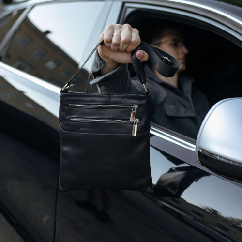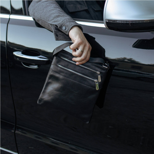 Чоловіча шкіряна сумка через плече чорна Double Up