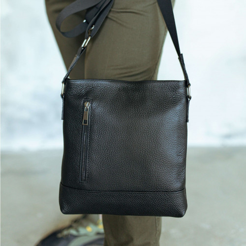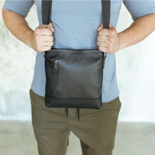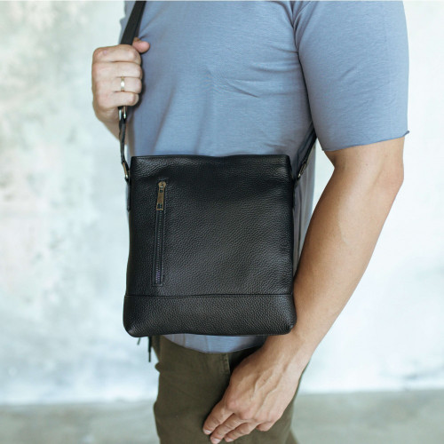 Чоловіча шкіряна сумка через плече чорна Flash Right