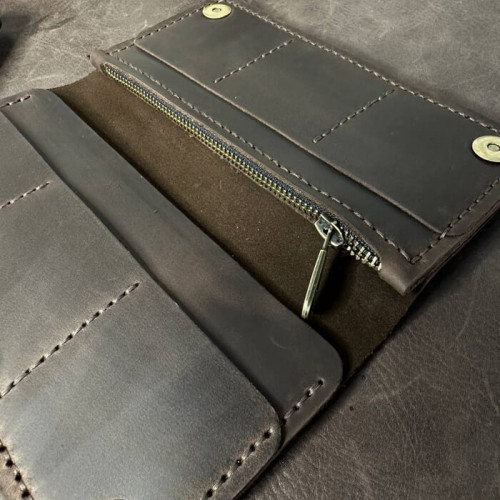 Довгий шкіряний гаманець Лонгер виготовлений із 100% натуральної шкіри. Ми використовуємо високоякісні матеріали, які забезпечують тривале використання. Цей довгий шкіряний гаманець «любить» дотики та носіння. Згодом отримає патину і виглядатиме повним характеру та індивідуальності.