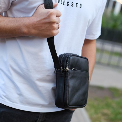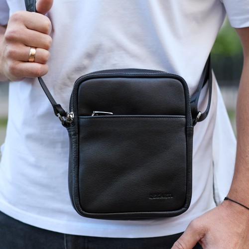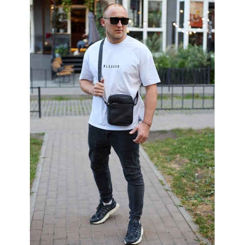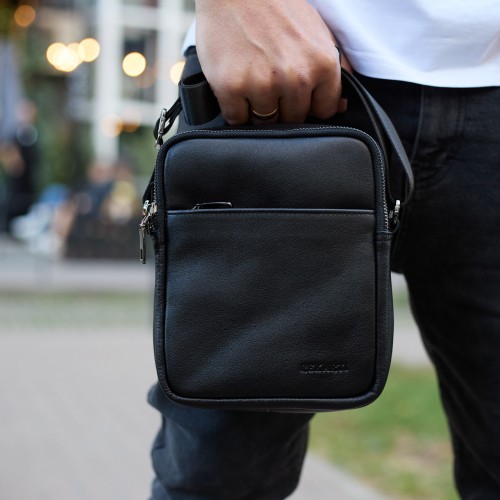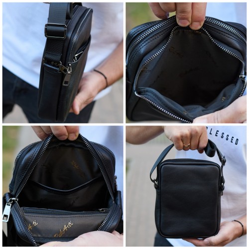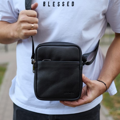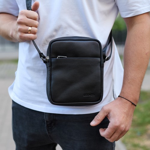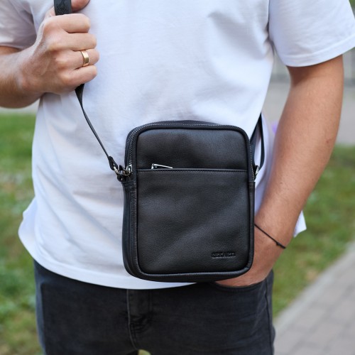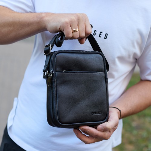 Чоловіча сумка через плече, гладкая кожа 20х16х6, месенджер для міста, барсетка для телефону та документів, чорна