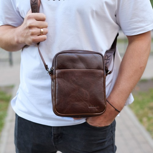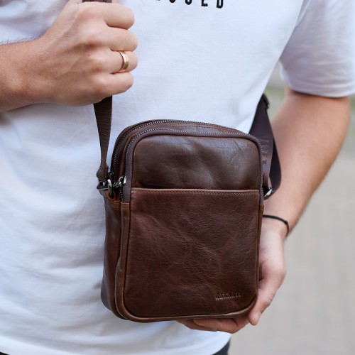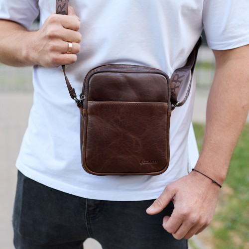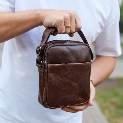 Чоловічий месенджер через плече 20х16х6, сумка планшетка для міста, барсетка для телефону, коричнева