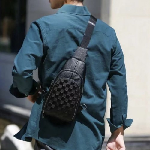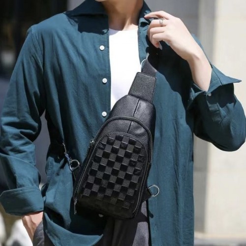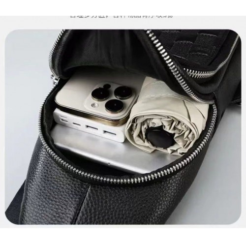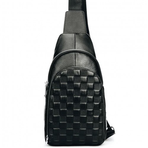 Чоловічий рюкзак на одне плече 18х31х6, шкіряний слінг, чорний