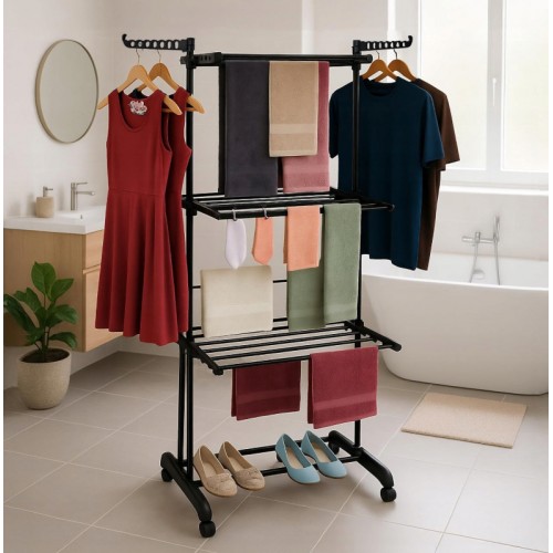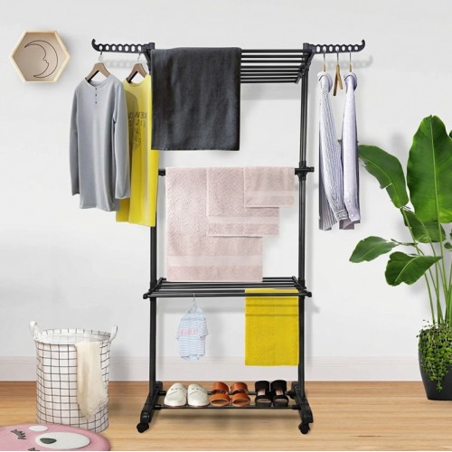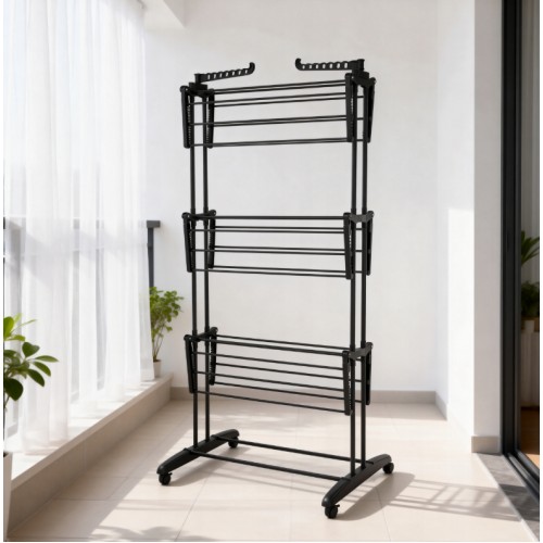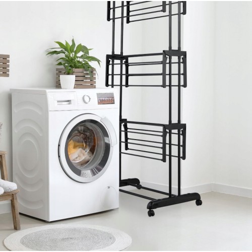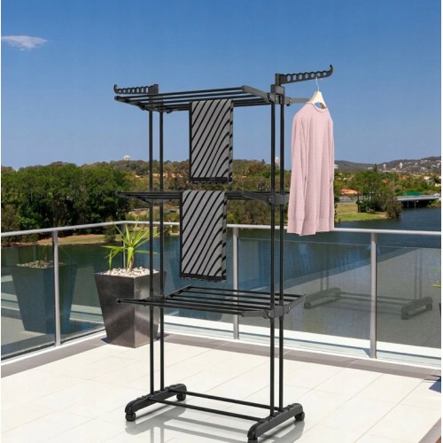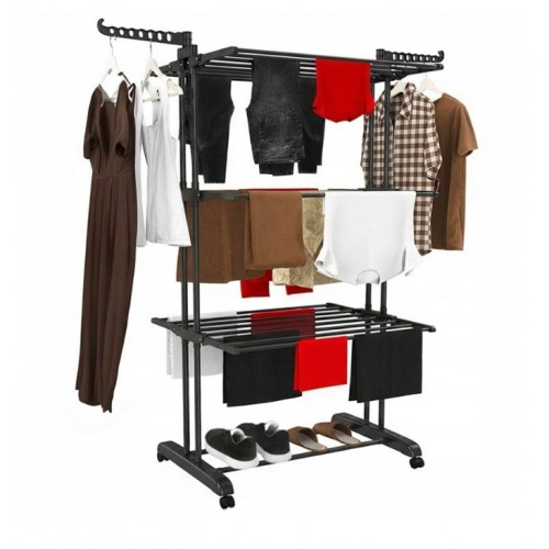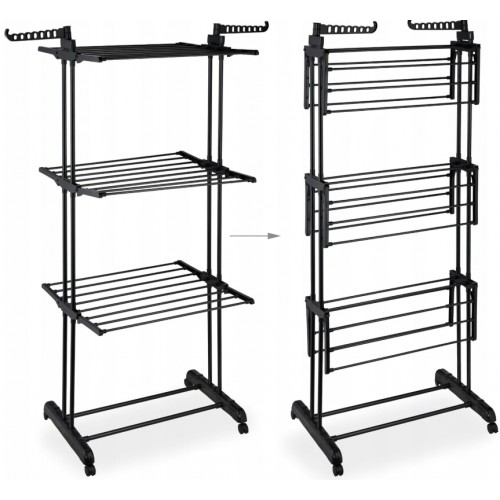 Складна вертикальна сушарка для білизни (76 × 64 × 177 см) 3 рівні + 1 для взуття, Чорна