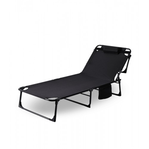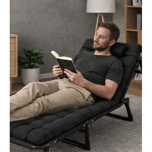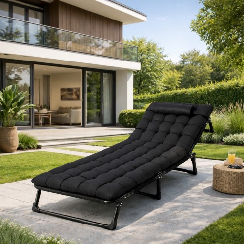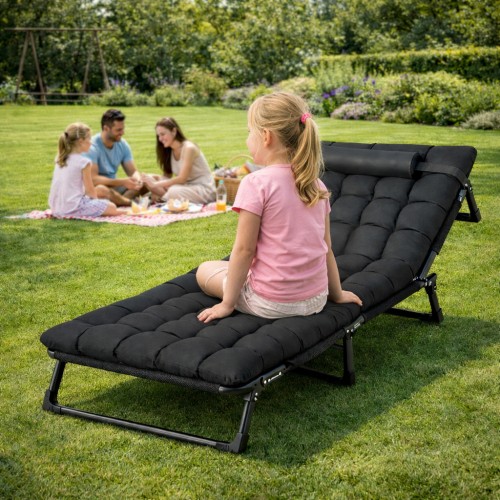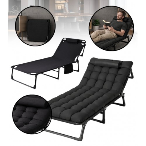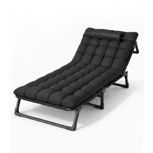 Складний туристичний лежак з матрацом та підголівником (178 × 56 × 30 см), регульований садовий шезлонг (Чорний)