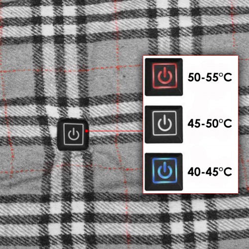 Плед с подогревом оснащен таймером для прекращения работы. Регулируется двойным нажатием на кнопку. На любой температуре, 2 нажатия подряд - 30 мин. Еще 2 нажатия, кнопка начинает моргать - 60 минут. Автоматическое выключение гарантирует безопасность, благодаря этому, использовать изделие можно даже ночью.