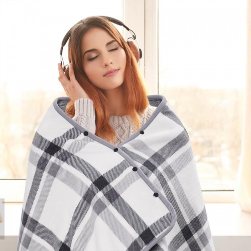 Электрическая шаль плед с подогревом регулируемая температура от usb от повербанка 140*80CM Gray + White