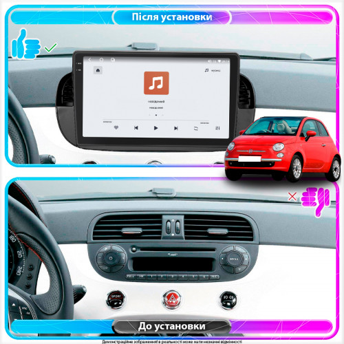 Штатная магнитола Lesko для Fiat 500 II 2007-2015 экран 9" 4/64 QLED CarPlay 4G Wi-Fi GPS 360 Prime