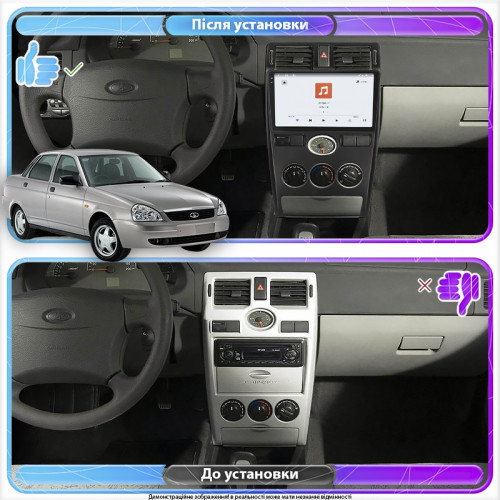 Штатная магнитола Lesko для LADA (ВАЗ) Priora I 2007-2013 экран 9" 4/64 QLED CarPlay 4G Wi-Fi GPS 360 Prime