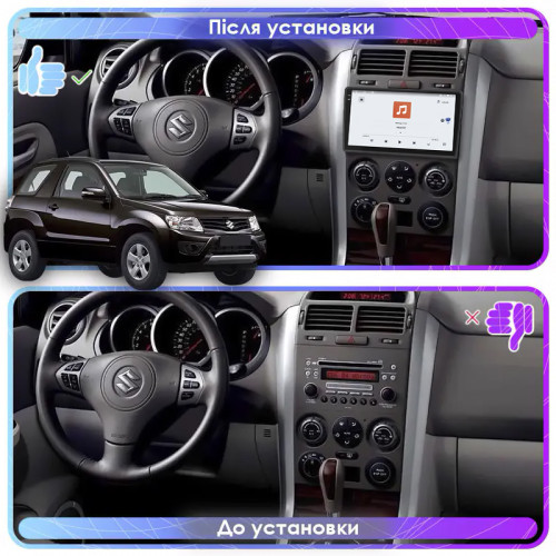 Штатная магнитола Lesko для Suzuki Grand Vitara III Рестайлинг 2 2012-2015 экран 9" 4/64 QLED CarPlay 4G Wi-Fi GPS 360 Prime