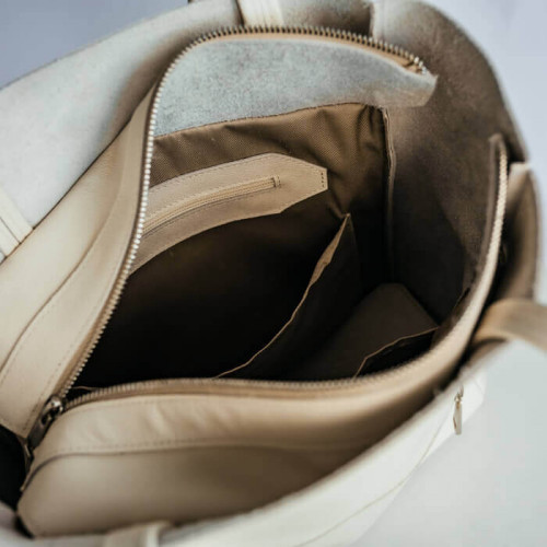 Ця модель бежевої сумки Юта ідеально підходить для будь-яких ситуацій - від роботи і офісу до подорожей. Завдяки своїй великій вмісткості, вона легко вмістить ваш гаманець, ключі, телефон, косметику, окуляри та навіть контейнер з обідом. Ви не тільки будете мати все необхідне під рукою, але й будете виглядати стильно та елегантно завжди.