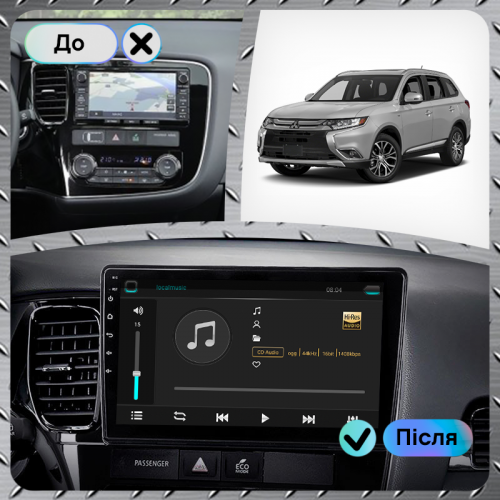 Штатная магнитола Lesko для Mitsubishi Outlander III Рестайлинг 2014-2015 экран 10" 2/32Gb Wi-Fi GPS Base