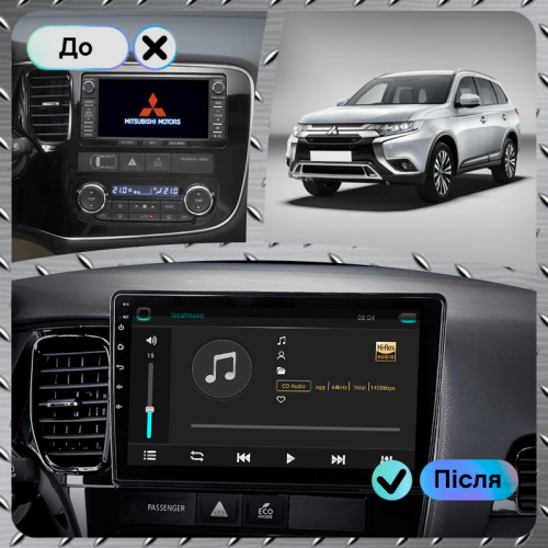 Штатная магнитола Lesko для Mitsubishi Outlander III Рестайлинг 3 2018-н.в. экран 10" 4/64Gb 4G Wi-Fi GPS Top