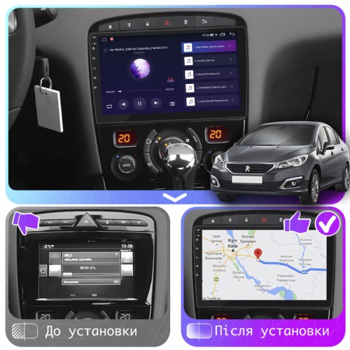 Штатная магнитола Lesko для Peugeot 408 I Рестайлинг 2017-н.в. экран 9" 4/64Gb CarPlay 4G Wi-Fi GPS Prime