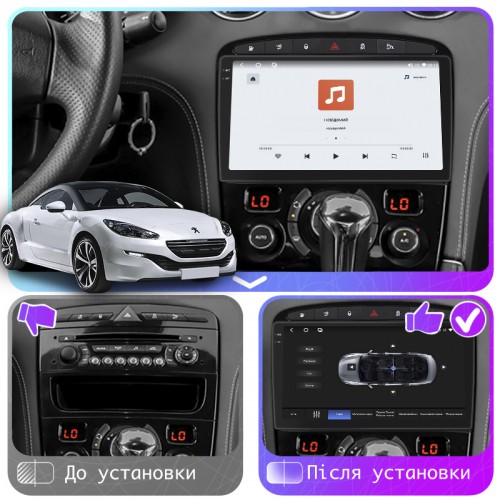 Штатная магнитола Lesko для Peugeot RCZ I Рестайлинг 2012-2015 экран 9" 4/64 QLED CarPlay 4G Wi-Fi GPS 360 Prime