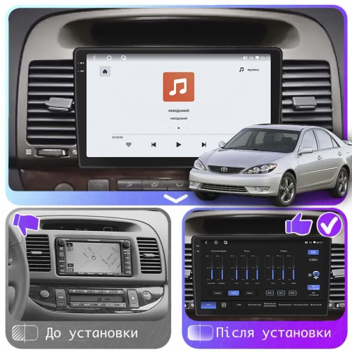 Штатная магнитола Lesko для Toyota Camry V (XV30) Рестайлинг 2004-2006 экран 9" 4/64 QLED CarPlay 4G Wi-Fi GPS 360 Prime