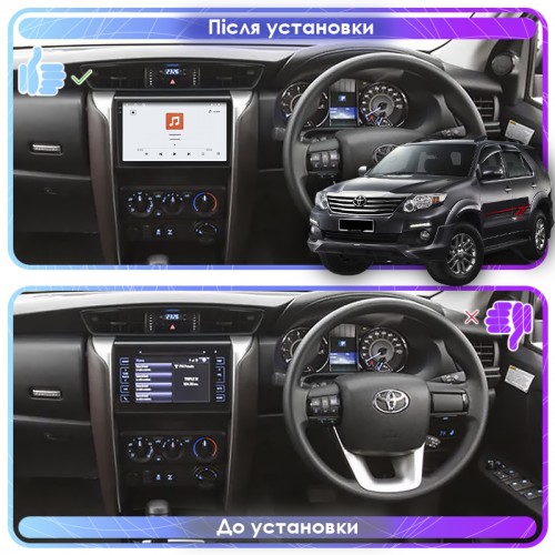 Штатная магнитола Lesko для Toyota Fortuner II 2015-2020 экран 9" 4/64 QLED CarPlay 4G Wi-Fi GPS 360 Prime