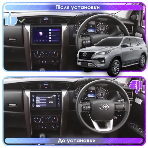 Штатная магнитола Lesko для Toyota Fortuner II Рестайлинг 2020-н.в. экран 9" 6/128Gb 4G Wi-Fi GPS Top