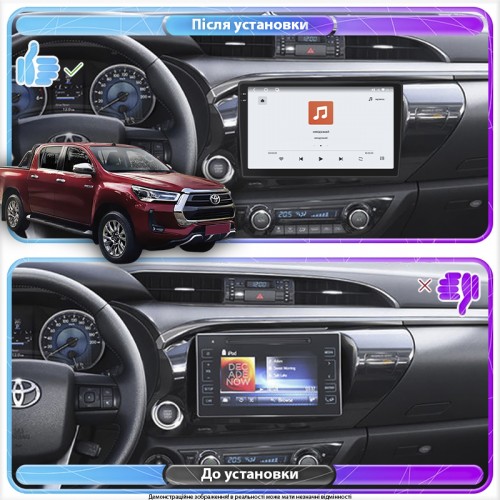 Штатная магнитола Lesko для Toyota Hilux VIII 2015-2020 экран 10" 4/64 QLED CarPlay 4G Wi-Fi GPS 360 Prime