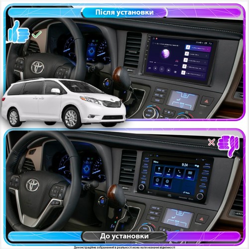 Штатная магнитола Lesko для Toyota Sienna III Рестайлинг 2014-2017 экран 9" 2/32Gb Wi-Fi GPS Base