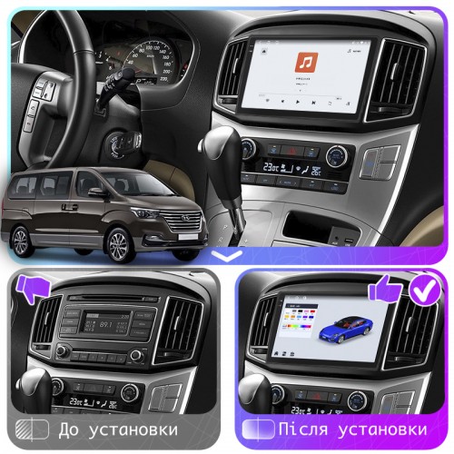 Штатная магнитола Lesko для Hyundai H-1 II Рестайлинг 2 2017-н.в. экран 9" 4/64 QLED CarPlay 4G Wi-Fi GPS 360 Prime