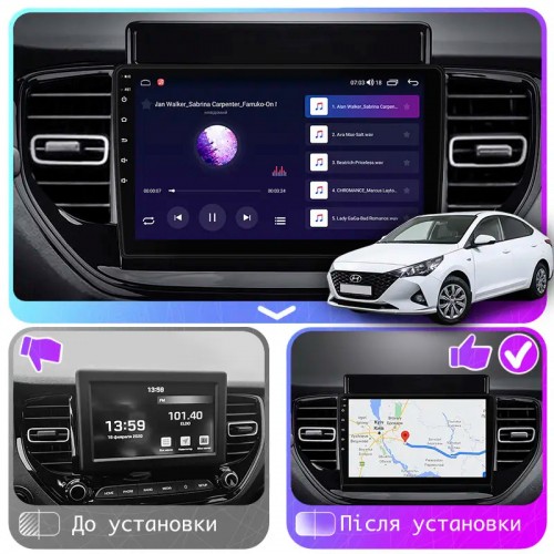 Штатная магнитола Lesko для Hyundai Solaris II Рестайлинг 2020-н.в. экран 9" 1/16Gb Wi-Fi GPS Base