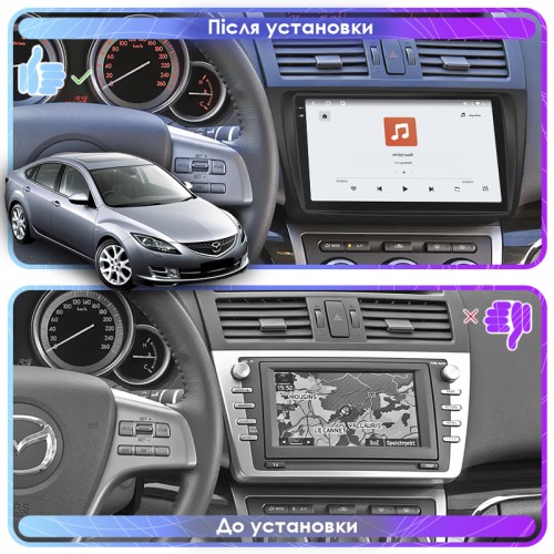 Штатная магнитола Lesko для Mazda 6 II (GH) Рестайлинг 2009-2013 экран 9" 4/64 QLED CarPlay 4G Wi-Fi GPS 360 Prime