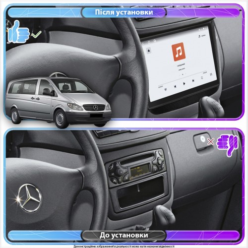 Штатная магнитола Lesko для Mercedes-Benz Vito II (W639) 2003-2010 экран 10" 4/64 QLED CarPlay 4G Wi-Fi GPS 360 Prime