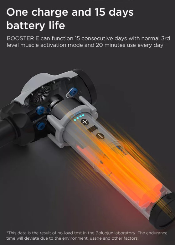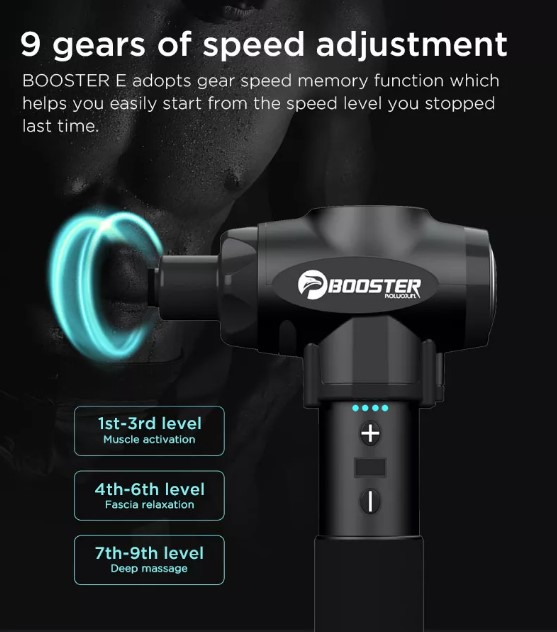 М’язовий ударний масажер Booster E допомагає зняти м’язову ригідність і біль, покращити кровообіг та лімфоток. Спортсмени можуть використовувати Booster E для швидшого відновлення після тренувань і фізичних травм. Також масажер підходить для особистого або лікувального використання як масажний пістолет для фізіотерапії, що сприяє покращенню стану м’яких тканин організму та запобіганню запаленням.