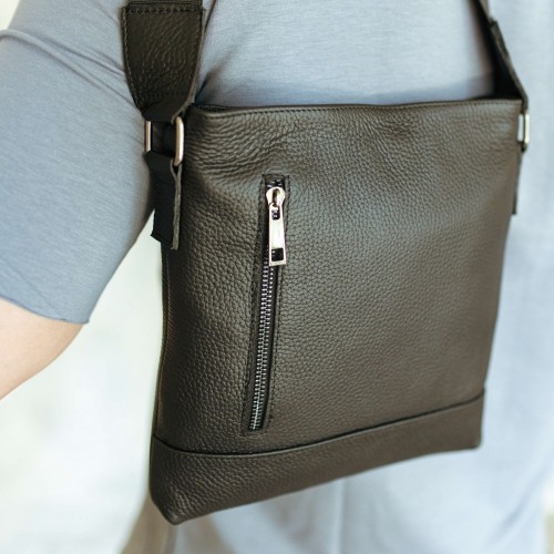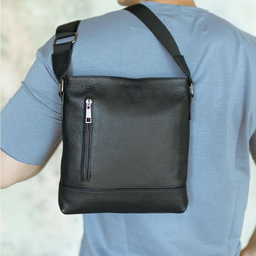 Чоловіча шкіряна сумка через плече чорна Flash Right