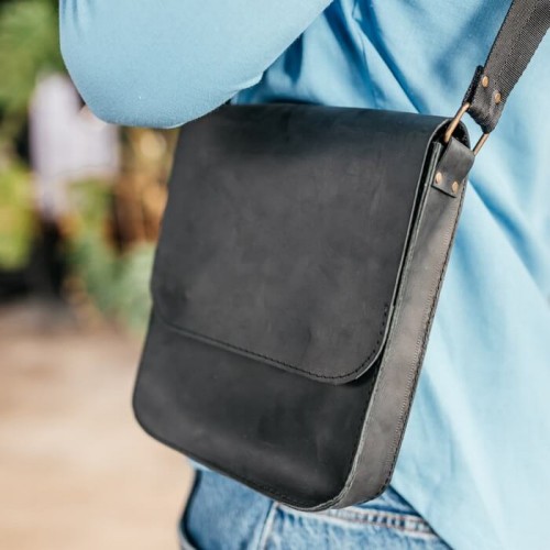 Ця чорна сумка може замінити вам клатч або барсетку, створюючи вишуканий образ. Вона має зручний ремінець для перенесення через плече, що додає комфорту під час її використання. Завдяки своєму дизайну і функціональності, ця шкіряна сумка-месенджер стане незамінним аксесуаром для вашого повсякденного життя.