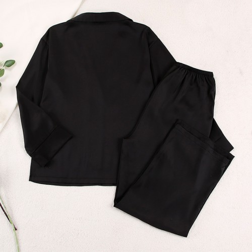 Женский шелковый комплект для дома и сна 2SYCK1315 рукашка и штаны женская пижама атласная Черный M
