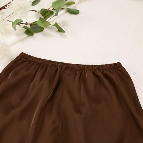 Женский шелковый комплект для дома и сна 2SYCK1315 рукашка и штаны женская пижама атласная Шоколадный M