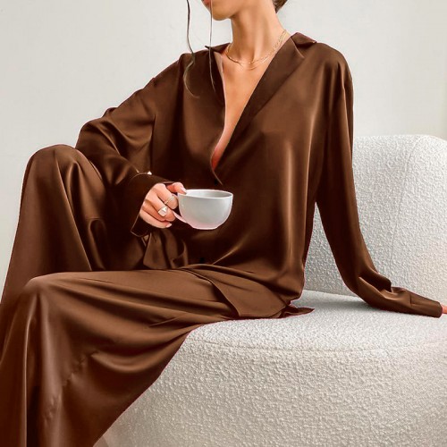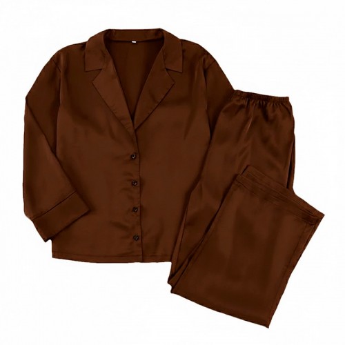 Женский шелковый комплект для дома и сна 2SYCK1315 рукашка и штаны женская пижама атласная Шоколадный S