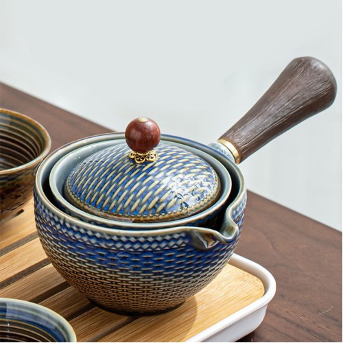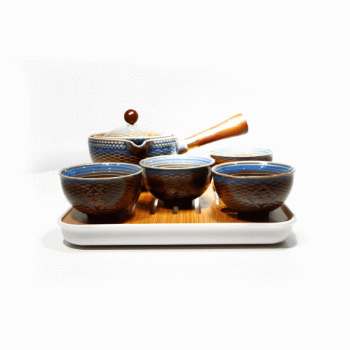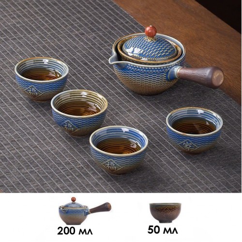 Дорожный набор для чайной церемонии керамический Dragon Blue