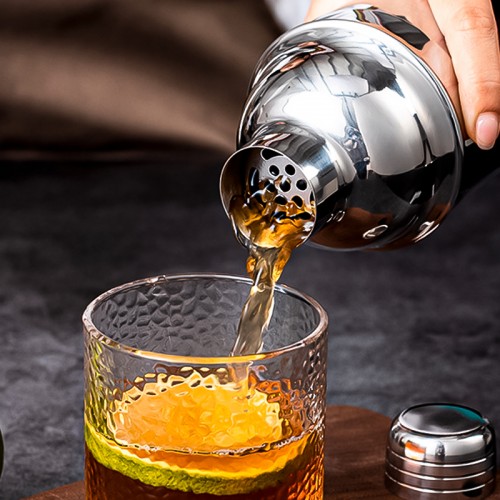 Широкий функционал: В наборе содержатся все необходимые предметы для приготовления коктейлей: шейкер с ситом в крышке для смешивания и охлаждения напитков, двусторонний джигер для точного измерения составляющих и спиральная ложка для размешивания.