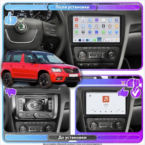 Штатная магнитола Lesko для Skoda Yeti I Рестайлинг type B 2013-2018 экран 10" 4/64 QLED CarPlay 4G Wi-Fi GPS 360 Prime