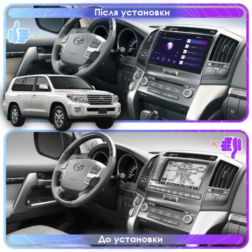 Штатная магнитола Lesko для Toyota Land Cruiser 200 Series Рестайлинг 1 2012-2015 экран 10" 4/64Gb CarPlay 4G Wi-Fi GPS Prime