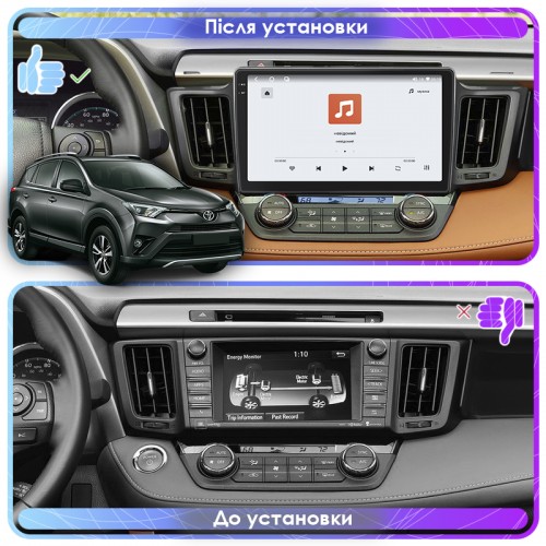 Штатная магнитола Lesko для Toyota RAV4 IV (CA40) Рестайлинг 2015-2019 экран 10" 4/64 QLED CarPlay 4G Wi-Fi GPS 360 Prime