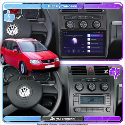 Штатная магнитола Lesko для Volkswagen Touran I 2003-2006 экран 10" 2/32Gb Wi-Fi GPS Base